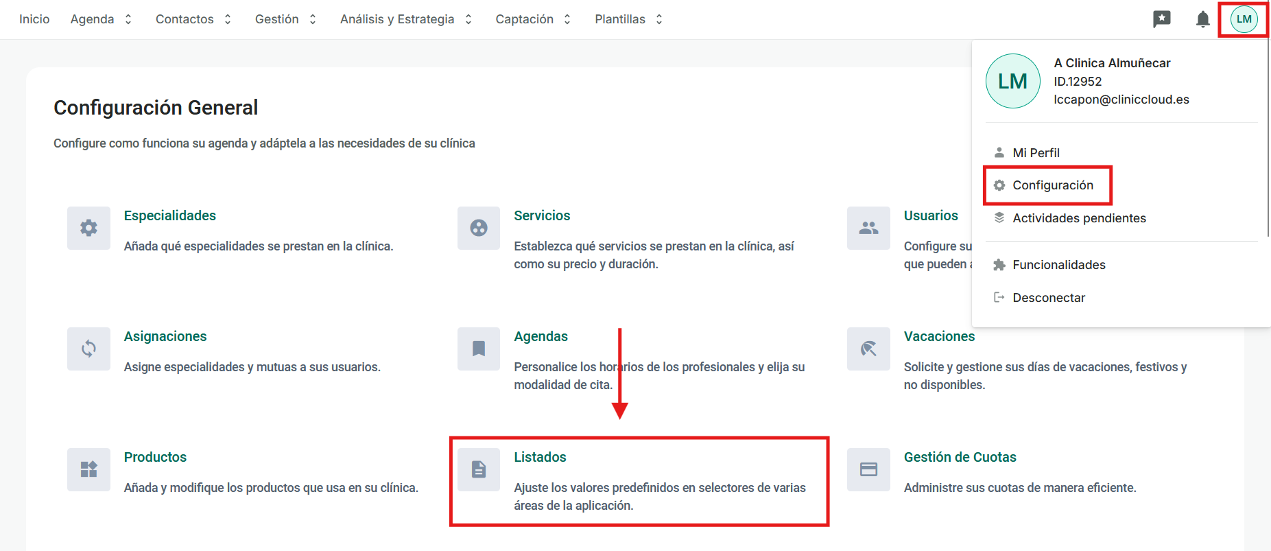 Una vez activadas las series de facturación, para personalizar nuestras series debemos dirigirnos a Configuración -> Listados: