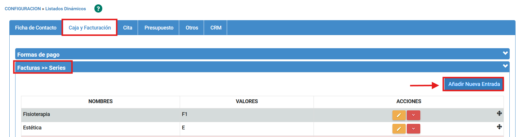 *Esta serie NO la debemos de crear en Configuración > Listados, pues se duplicaría la serie.