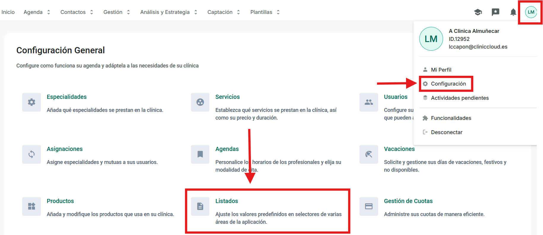 En primer lugar para poder incluir estados a nuestros presupuestos debemos acceder a Configuración -> 9. Listados