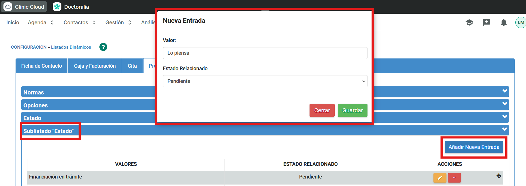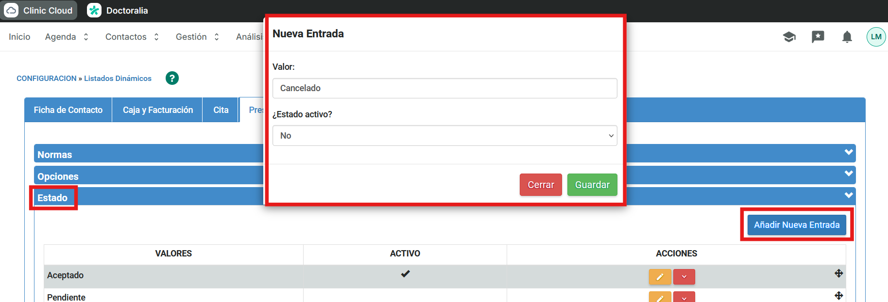 - Estado Relacionado: Corresponde a los estados configurados en primer lugar (pendiente, aceptado y cancelado)