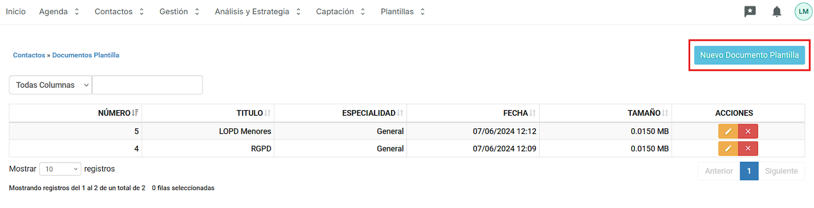 2- Clica en Nuevo Documento Plantilla