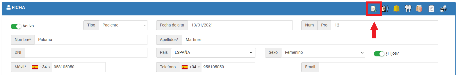 1- Ve a Ficha del paciente > Documentos