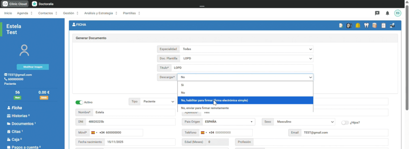 Paso 3: (último paso) Generar y firma el documento dentro de la ficha del paciente