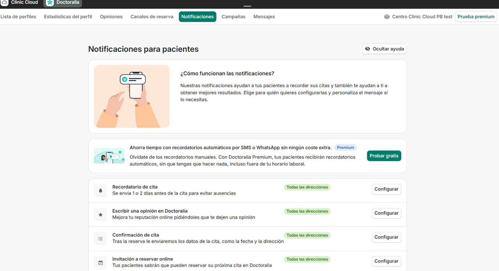 3. ¿Se envían notificaciones a los pacientes que reservan cita a través de Doctoralia si están desactivadas?