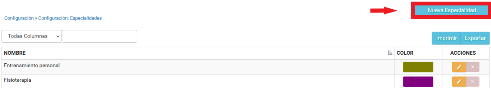 Accedemos a CONFIGURACIÓN > ESPECIALIDADES: