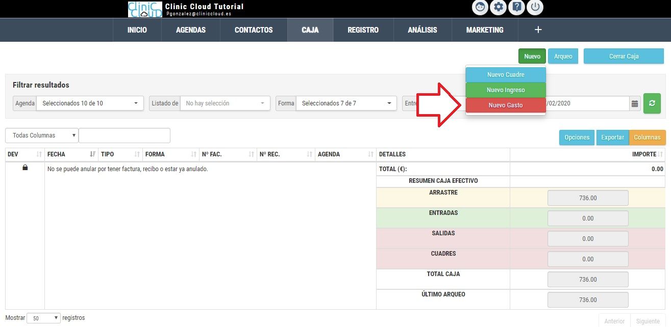 Una vez estemos dentro, debemos rellenar todos los datos solicitados. Además, recuerda que si deseas ingresar tu factura de gastos en Gestoría, deberás marcar la casilla «Gestoría» en verde. Finalmente, clicaremos en Guardar: