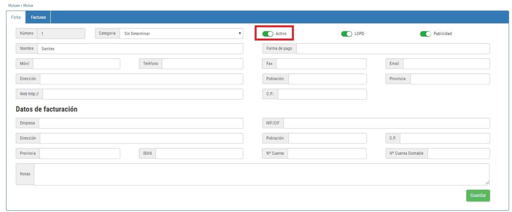 Para poder asociar la mutua con nuestro paciente/cliente, en primer lugar, debemos crear nuestra Mutua.