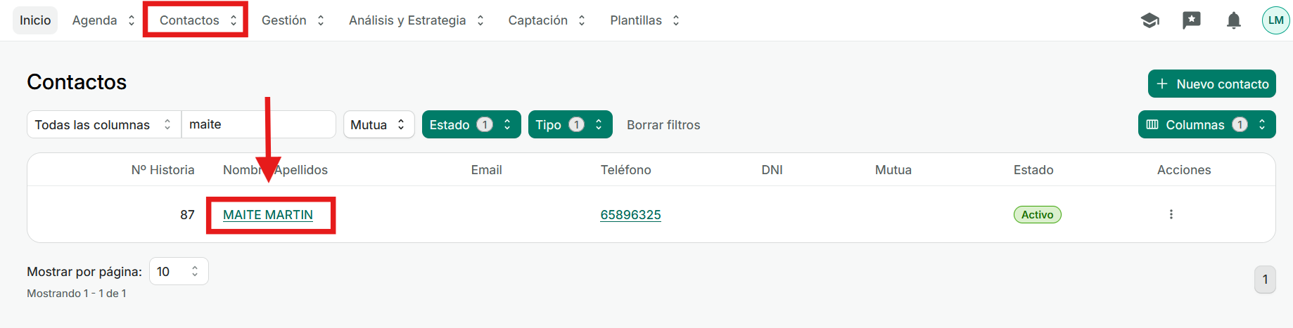 Para poder compartir bonos con otra persona primero debemos acceder a la ficha del contacto que quiere compartir sus bonos con la otra persona.