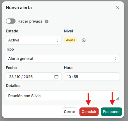 Cuando clicamos en esta campana podremos ver las alertas que tenemos hoy: