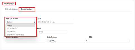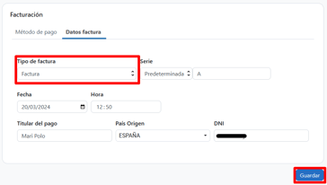Podrás cambiar el titular del pago, el DNI y elegir la serie correcta en el caso de tener las series de facturación activadas.