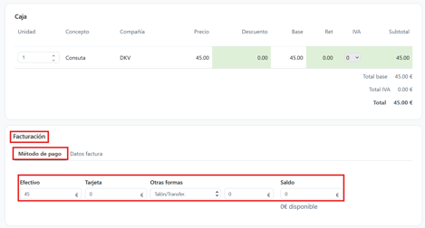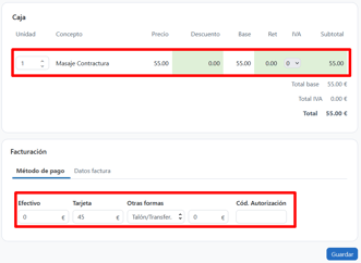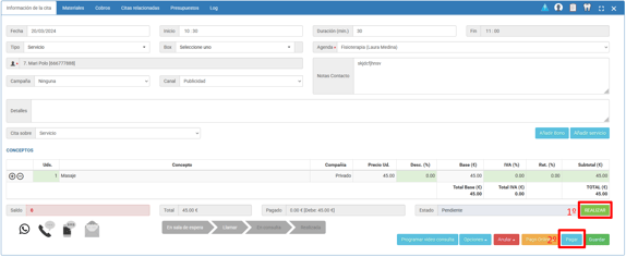 Desde el apartado de CAJA, también tienes la posibilidad de cobrar y facturar una cita.