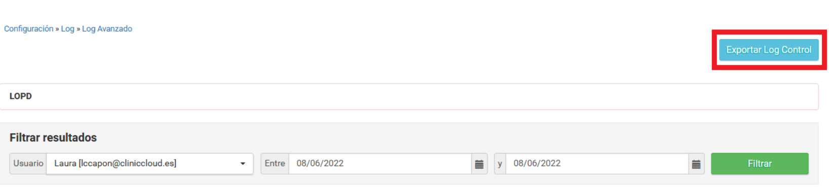 Al igual que el anterior, este Log se puede exportar en formato Excel.