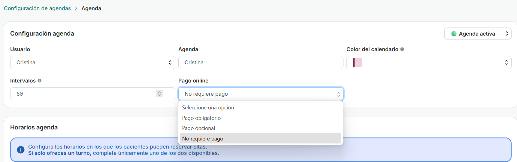 1.- CONFIGURACIÓN DE AGENDAS ONLINE
