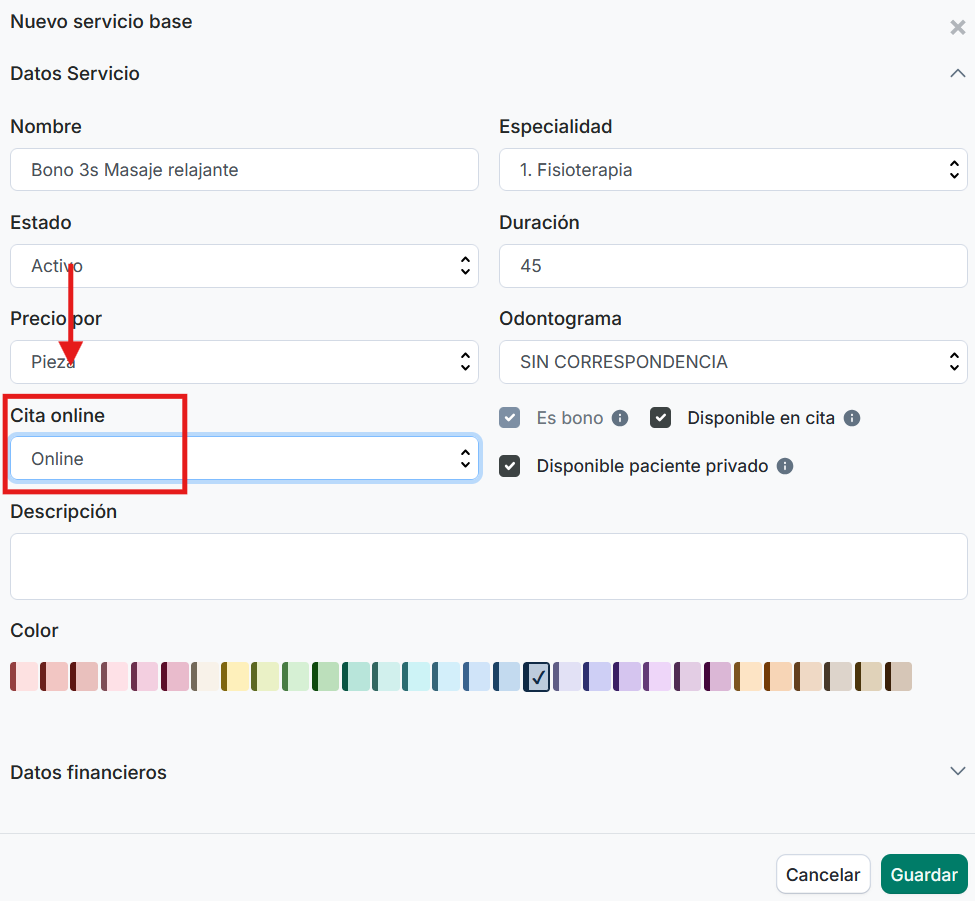 Por defecto, los Servicios NO estarán disponibles para Cita Online hasta que se marquen expresamente.