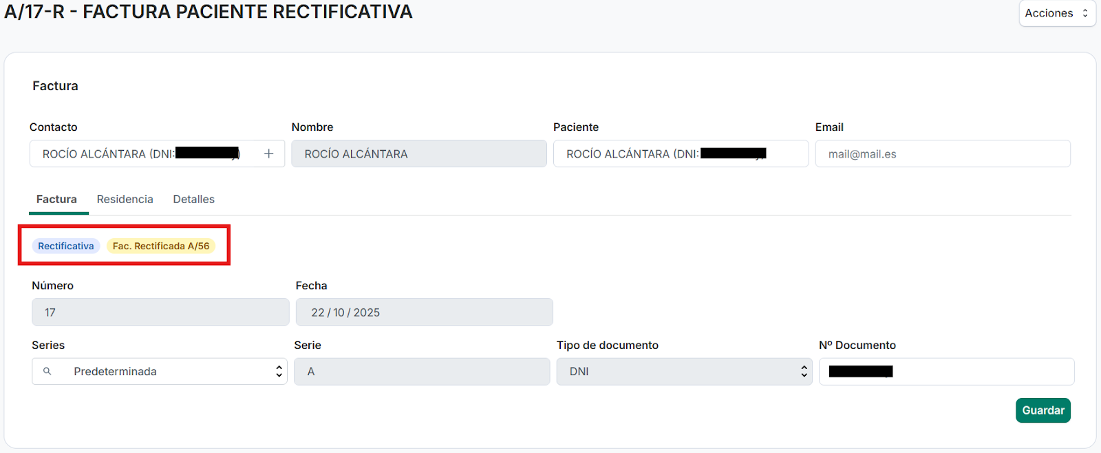- Paso 5: El sistema generará automáticamente una Factura Rectificativa