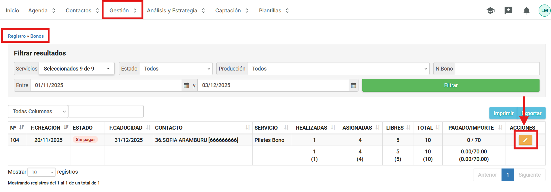 Podemos verificar dichos pasos a través de Gestión > Registro > Bonos, accediendo a la ficha del bono: