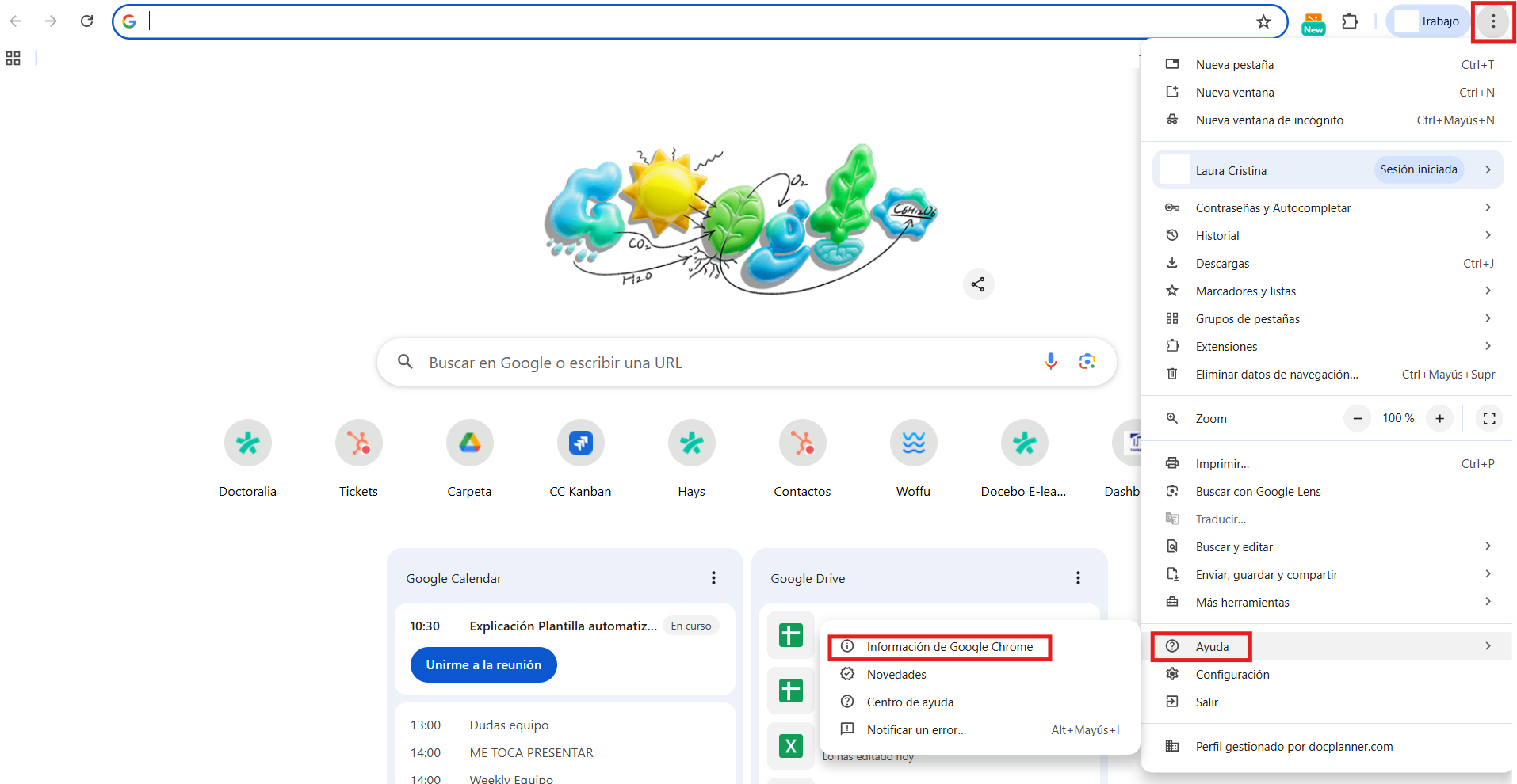 También es recomendable asegurarnos de que el navegador esté actualizado, para ello accedemos de nuevo a los tres puntos de la parte superior derecha del navegador, clicamos en Ayuda y en Información de Google Chrome: