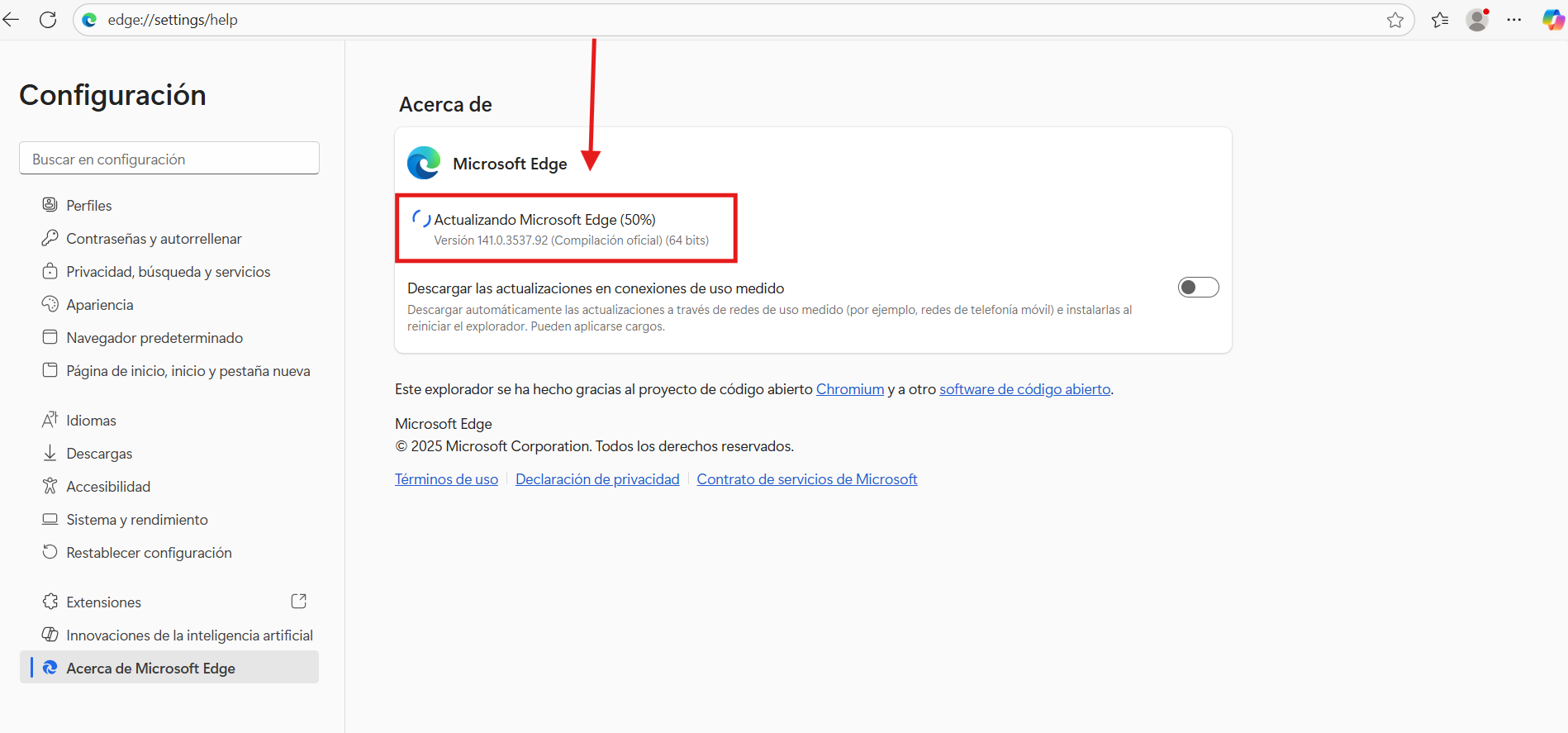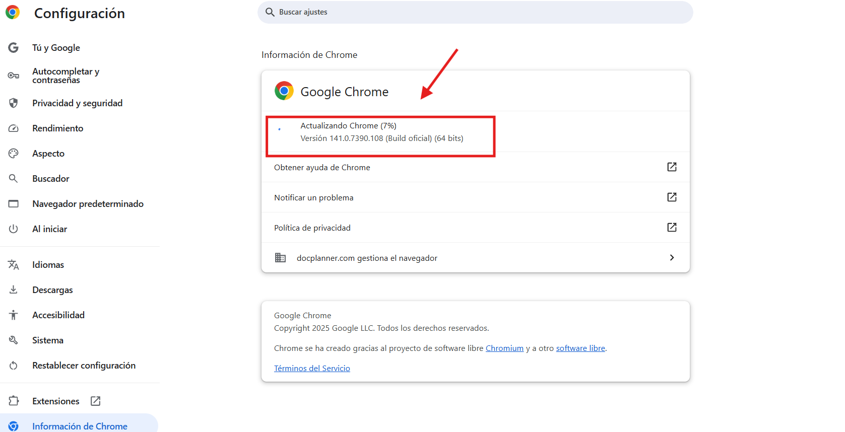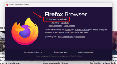 Al acceder aquí, el navegador se actualizará de manera automática: