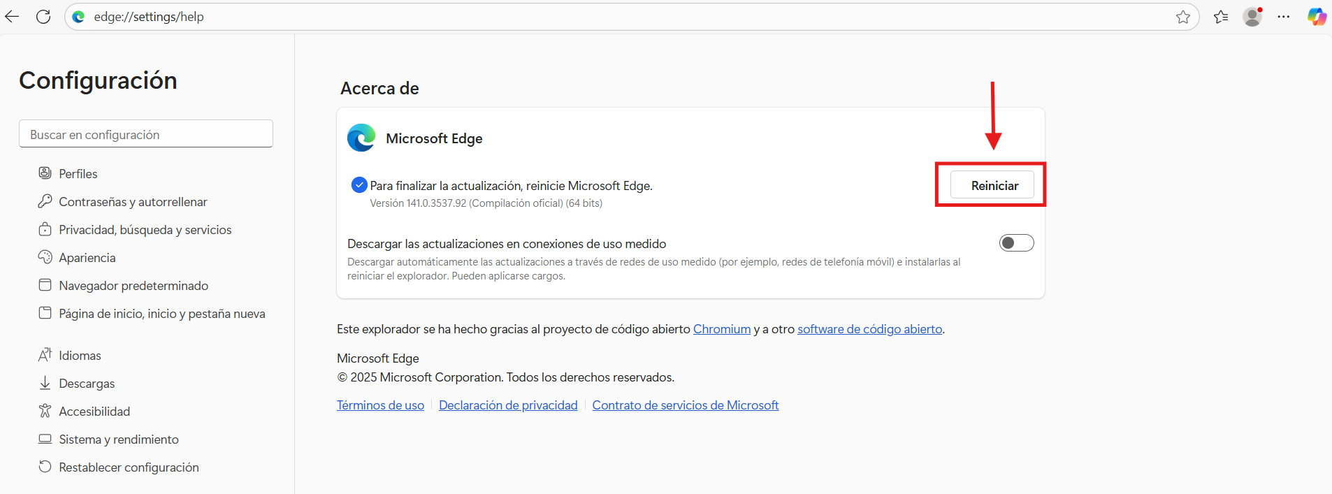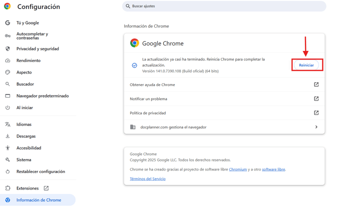 Una vez que termina de actualizar, cerraremos el navegador y lo volveremos a abrir.