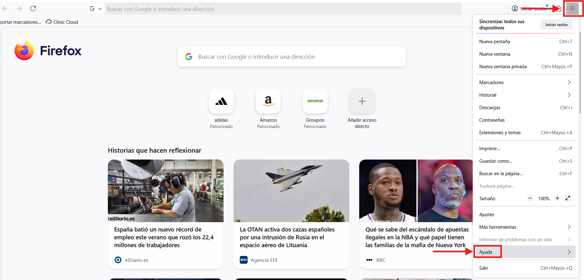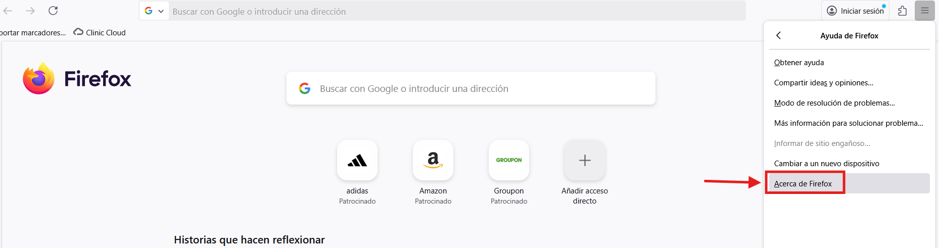 Para actualizar el navegador accedemos de nuevo a las tres rayas de la parte superior derecha y en Ayuda: