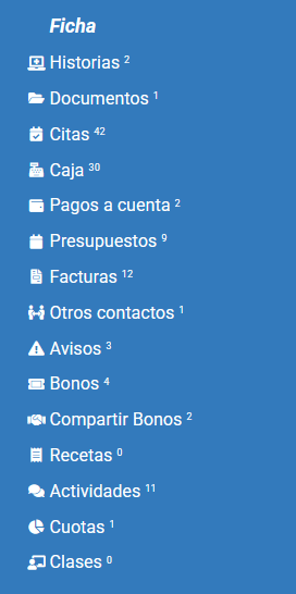 Además, desde este menú tendremos acceso a las distintas secciones de la ficha de nuestro contacto:
